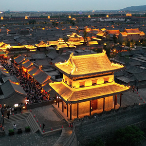 夜幕降臨,位于山西省太原市晉源區的太原古縣城流光溢彩,游人如織。太原古縣城始建于明代,占地面積約0.8平方公里,因其造型像一只飛鳥,也被譽為“鳳凰城”。歷經8年修繕后,太原古縣城于2021年5月重新對外開放。