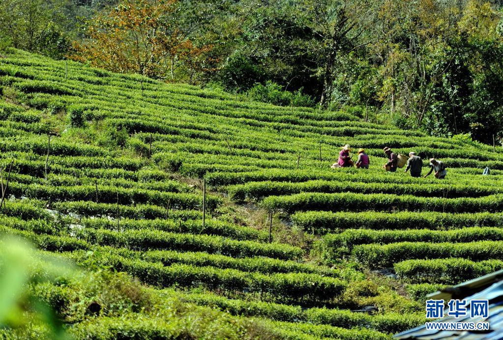 西藏易貢茶場工人在采摘茶葉(5月22日攝)。新華社記者 張汝鋒 攝