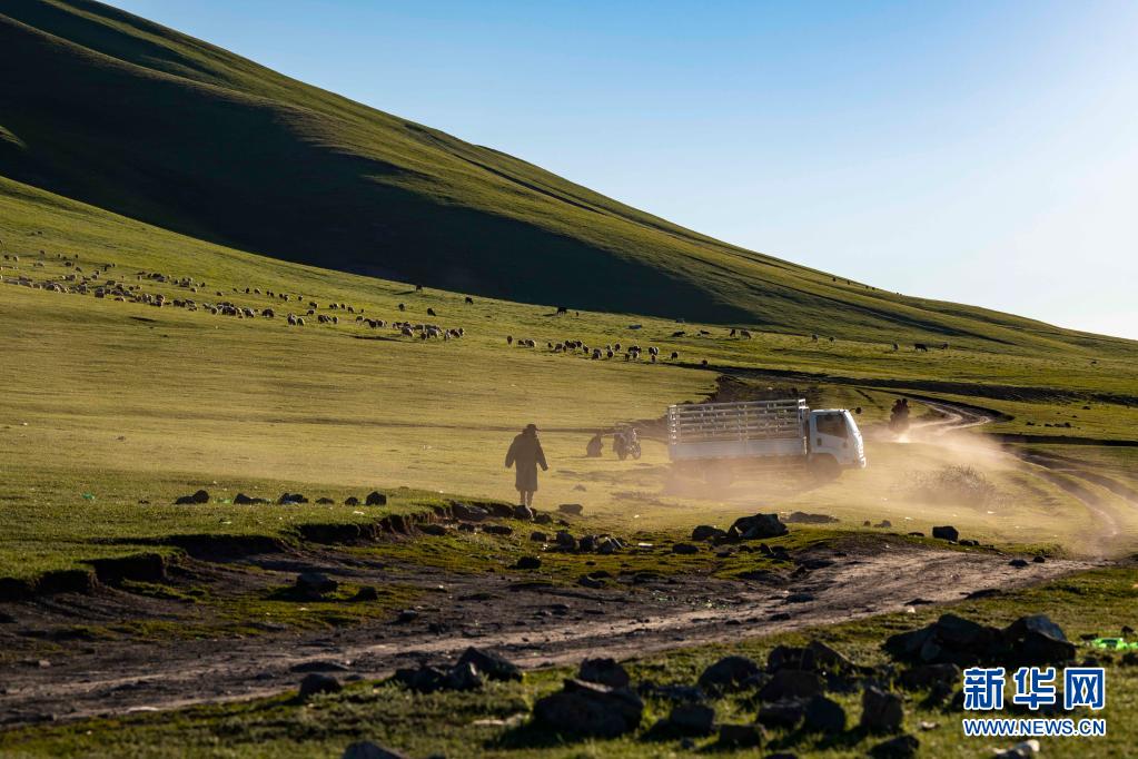 新疆裕民縣巴爾魯克山區(qū)夏牧場(chǎng)景觀(6月15日攝)。如今,牧民放牧條件得以改善,摩托車、汽車更多地出現(xiàn)在牧場(chǎng)上。
