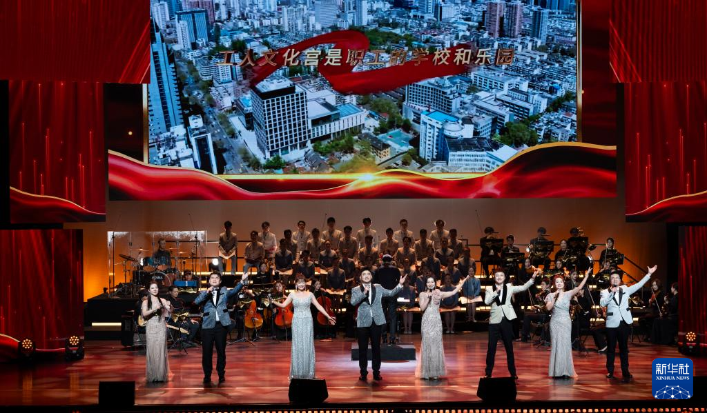 12月16日,在北京二七剧场举办的“中国梦·劳动美”2026新年音乐会上,演员在大合唱《亿万职工心向党》中歌唱。