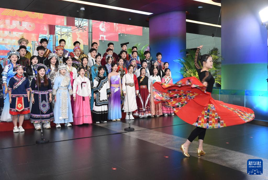 12月22日,青少年合唱团在国家大剧院北门入口处合唱迎宾。