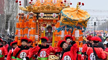 3月15日,演员在河北省石家庄市正定古城进行“大西帐保丰鼓”表演。