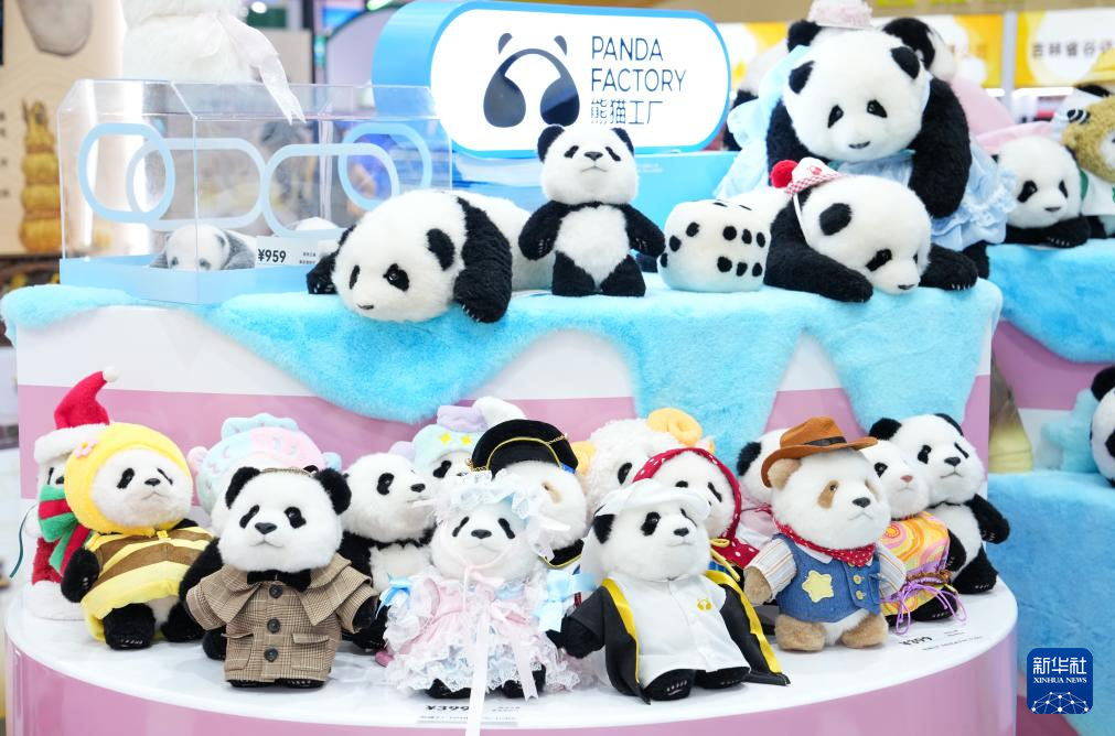 4月15日在第六届消博会上拍摄的秦岭大熊猫文创品牌——“秦憨憨”。