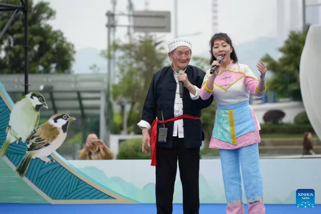CHONGQING, April 15 (Xinhua) -- On a spring morning in a public square in southwest China's Chongqing Municipality, a performance of traditional mountain songs turned into a lively debate.