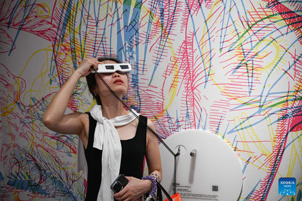 A visitor tries filters at the Hainan Science and Technology Museum in Haikou, south China's Hainan Province, April 29, 2026. The Hainan Science and Technology Museum officially opened here on Wednesday. As a brand-new landmark for science popularization in the Hainan Free Trade Port, the museum boasts four exhibition halls with a total construction area of approximately 46,500 square meters. (Xinhua/Pu Xiaoxu)