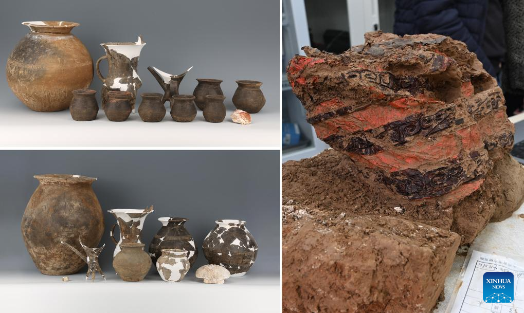 This combo file photo shows excavated artifacts discovered from the Langya Terrace site in Qingdao, east China's Shandong Province. (Xinhua)