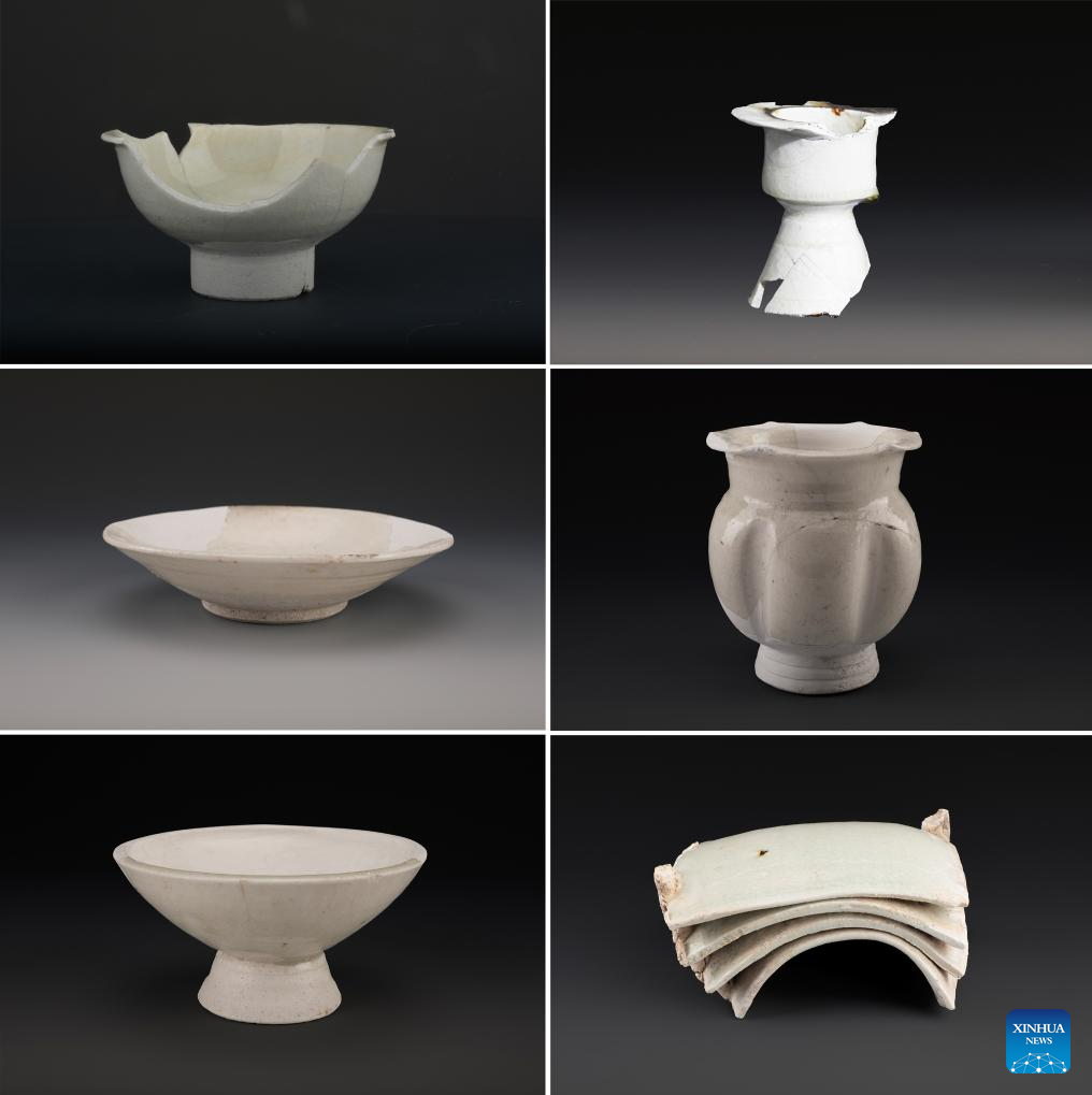 This combo file photo shows excavated porcelain discovered from the Suyukou Kiln Site near the Helan Mountains in Yinchuan, northwest China's Ningxia Hui Autonomous Region. (Xinhua)