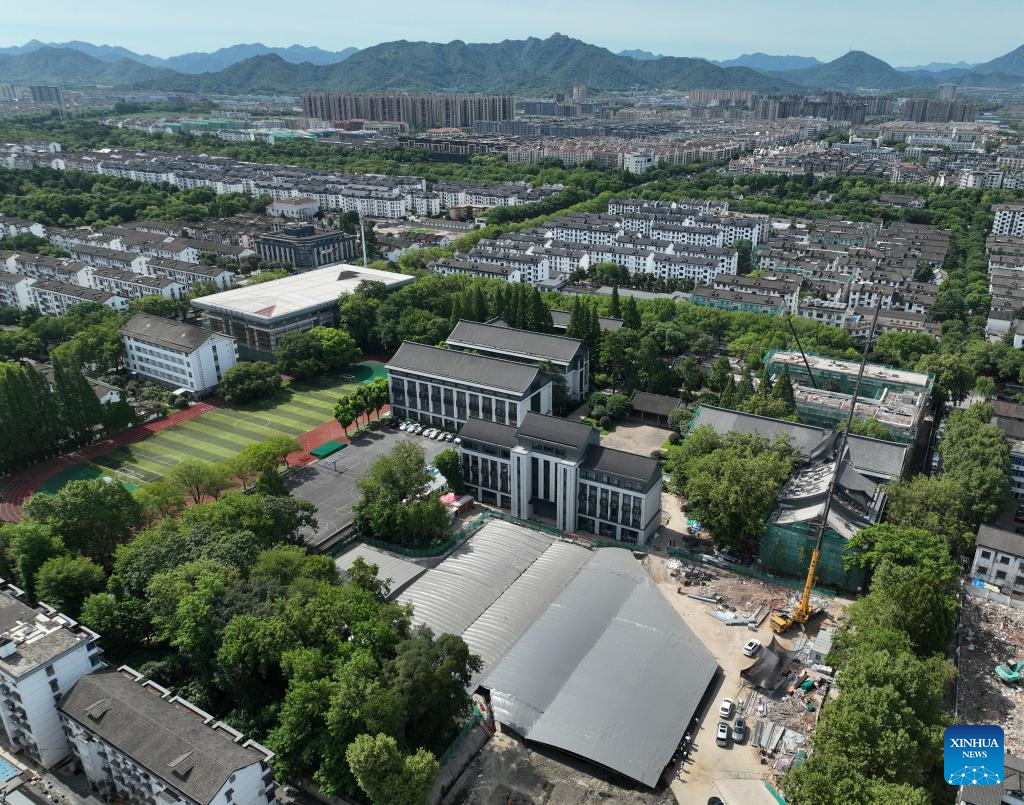 An aerial drone photo taken on July 23, 2024 shows a view of the ancient Yue State capital site and the Kuaiji Commandery Site from the Han Dynasty (202 B.C.-25 A.D.) to the Six Dynasties period (222-589) in Shaoxing, east China's Zhejiang Province. (Xinhua/Weng Xinyang)