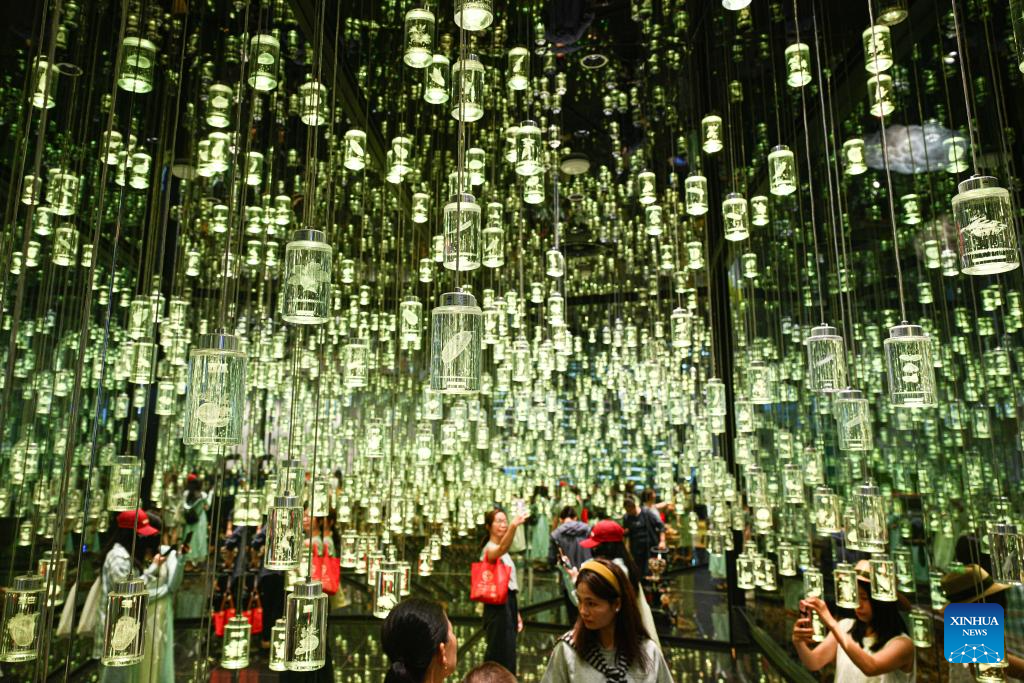 A visitor tries filters at the Hainan Science and Technology Museum in Haikou, south China's Hainan Province, April 29, 2026. The Hainan Science and Technology Museum officially opened here on Wednesday. As a brand-new landmark for science popularization in the Hainan Free Trade Port, the museum boasts four exhibition halls with a total construction area of approximately 46,500 square meters. (Xinhua/Pu Xiaoxu)