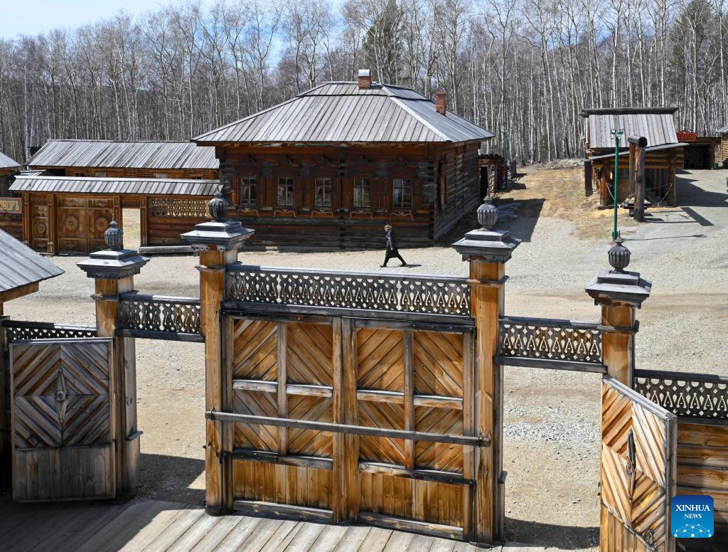 Tourists visit the Taltsy Architectural and Ethnographic Museum in Irkutsk, Russia, on April 28, 2026. (Xinhua/Hao Jianwei)