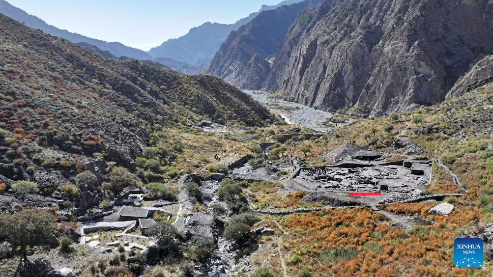 Archaeologists inspect a furnace at the remnants of the Suyukou Kiln Site near the Helan Mountains in Yinchuan, northwest China's Ningxia Hui Autonomous Region, Oct. 13, 2025. (Xinhua/Li He)