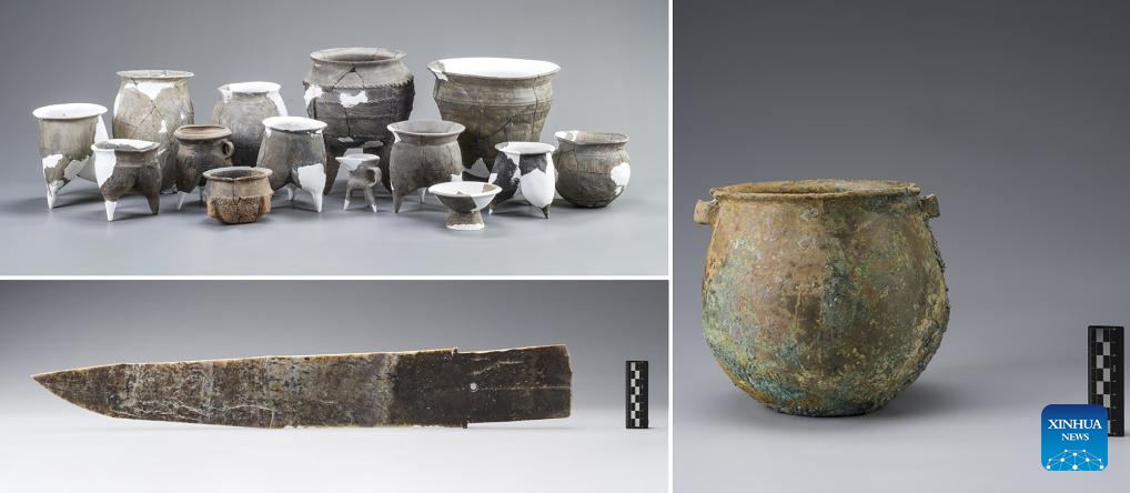This combo file photo shows artifacts unearthed at the Zhongcun site in Xiyang County, north China's Shanxi Province. (Xinhua)