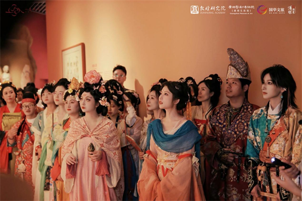 展演结束后,策展人与汉服博主现场签赠互动,与汉服同袍畅谈国风文化;随后,汉服巡游队伍穿行于场馆内外,华裳流转、古韵悠扬,成为展厅内外一道流动的国风风景线,让敦煌之美以更鲜活、更亲近的方式,触达每一位观众。