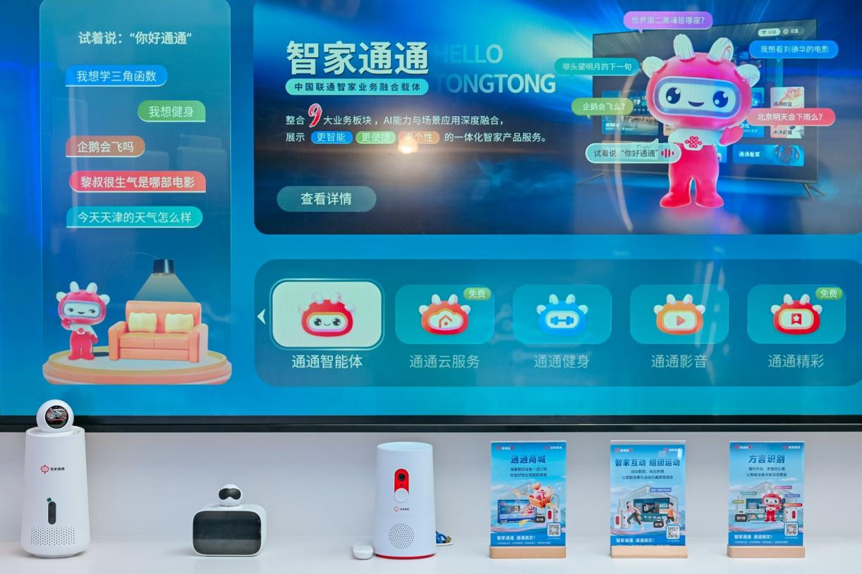 展区内,联通云智手机突破硬件边界,在云端流畅运行大型应用,其智能助理让办公效率倍增;联通云盘展示的AI知识库与试卷去手写功能,为家庭教育场景提供了智能化解决方案;一旁的智家通通与联通看家展台,则通过语音智控与智能看护,构建起集影音娱乐、安防警戒于一体的全屋智能生态。