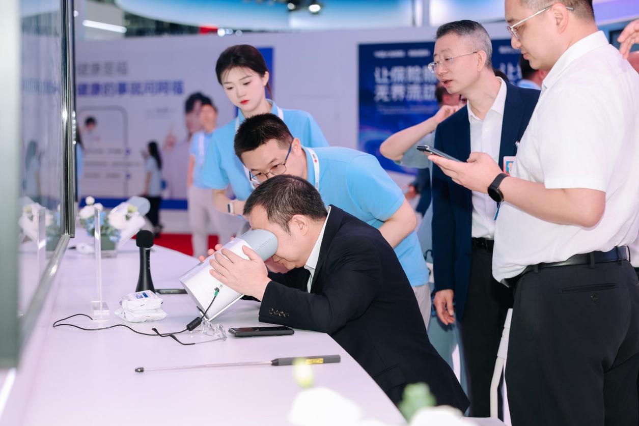 “请眼睛注视前方,不要眨眼。”在工作人员的指引下,观众正排队体验“3分钟眼底体检”。“AI眼底照相机”是一款专为基层医疗、体检中心设计的智能眼底疾病与重大慢病预警系统,集成自动对焦、自动拍摄与AI实时分析能力,3分钟内即可完成从图像采集到报告生成全流程,可识别30余种眼病和10余项全身慢性病风险,实现“眼底一张照,健康早知道”。