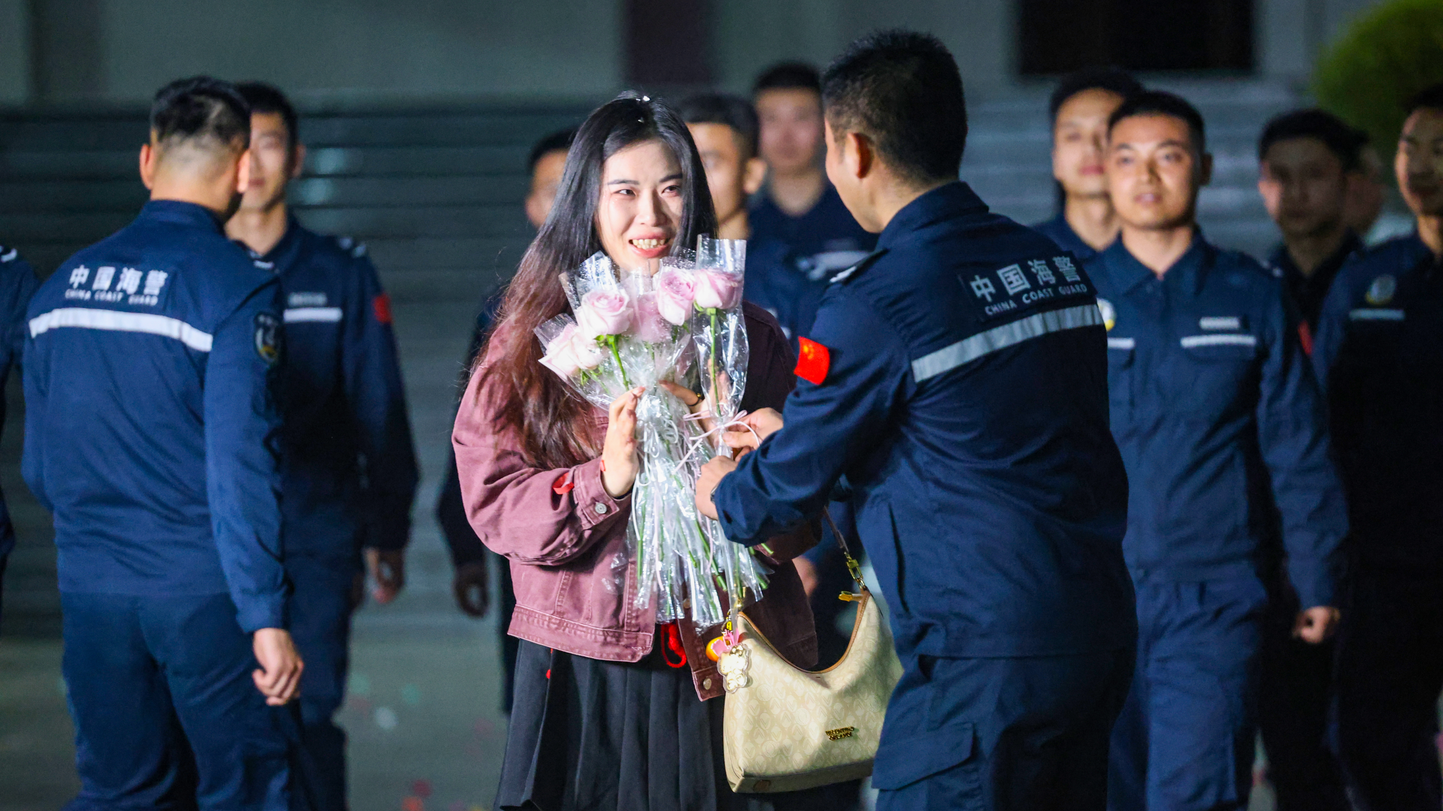 她看着新闻里海警执法的惊险画面