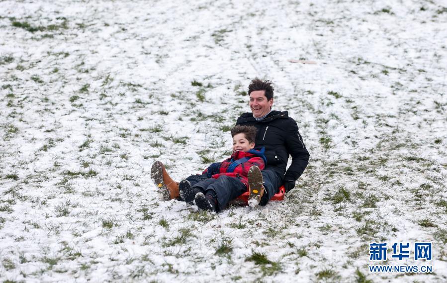 1月24日,人們?cè)谟?guó)倫敦享受雪趣。新華社記者韓巖攝