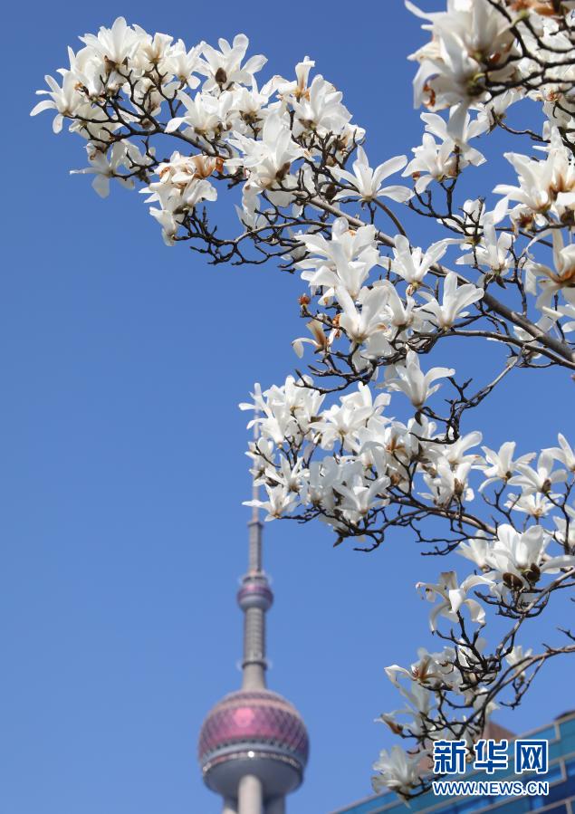 近日,上海天氣持續晴暖,玉蘭、櫻花等次第開放,吸引眾多游人踏春出游。