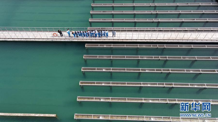 3月21日,水廠工作人員向學生介紹自來水生產流程(無人機照片)。