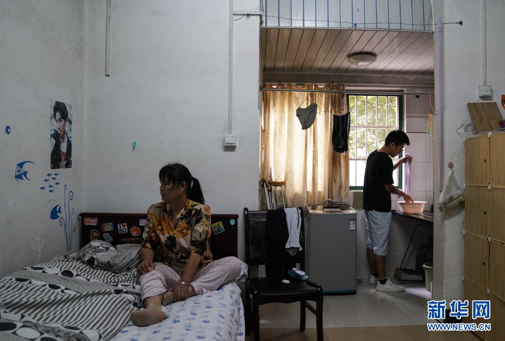 6月1日,趙建軍在宿舍內為母親準備洗臉的毛巾。新華社記者胡晨歡攝