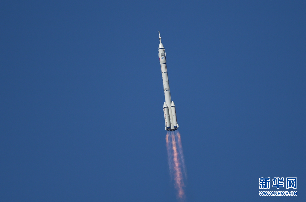 6月17日,搭載著神舟十二號載人飛船的長征二號F遙十二運載火箭在酒泉衛星發射中心點火升空。新華社記者 連振 攝