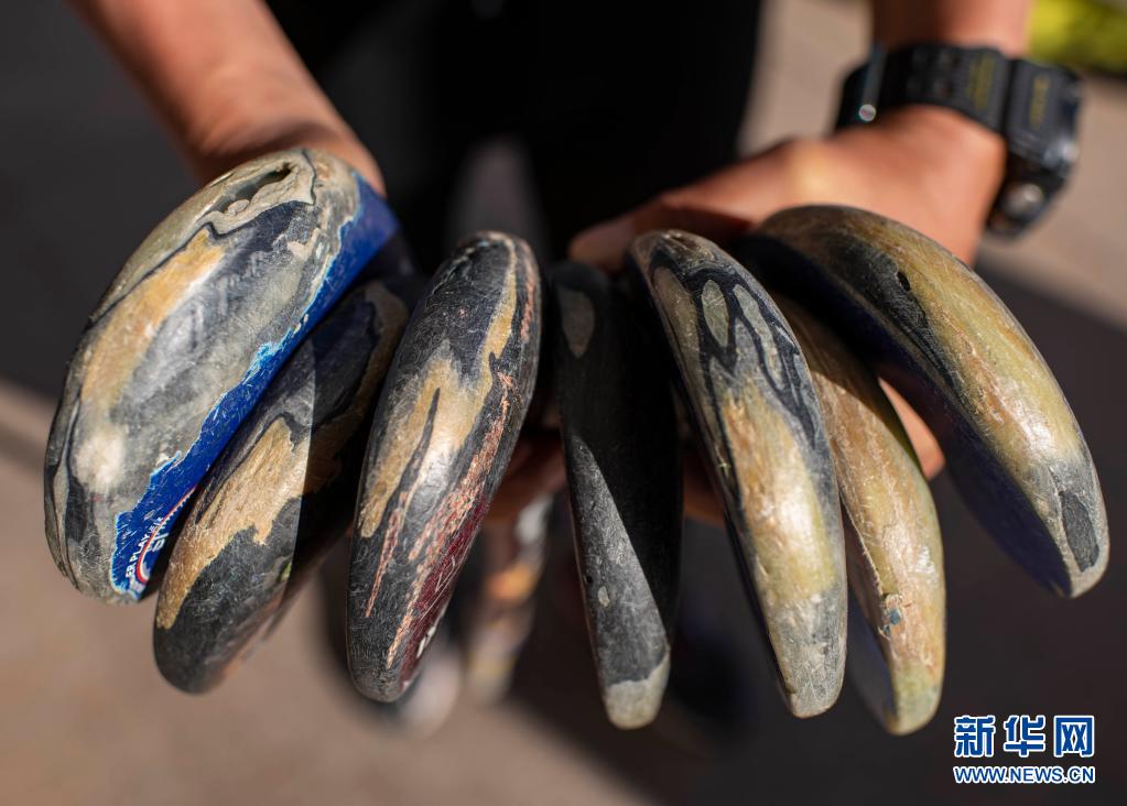 訓練結束后,教練杜寶柱在收納小隊員們訓練時使用的球棍(6月12日攝)。
