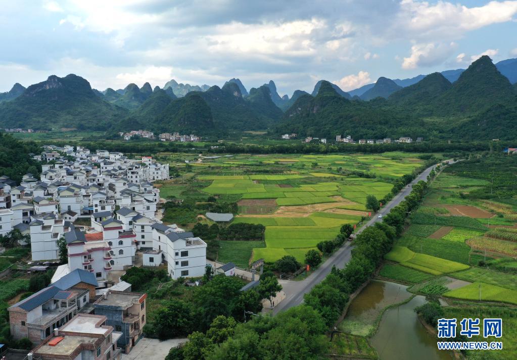 盛夏時節,廣西平樂縣張家鎮田園郁郁蔥蔥,美不勝收(7月14日攝,無人機照片)。