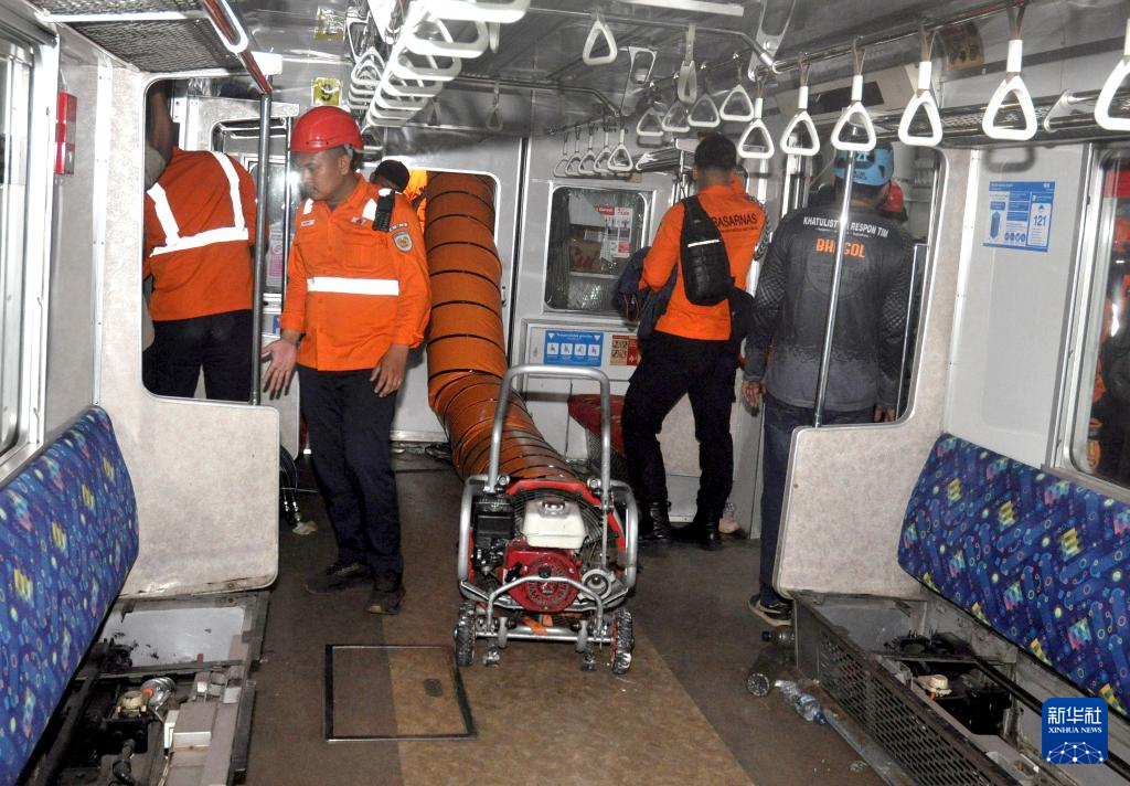 4月28日凌晨,在印度尼西亚西爪哇省勿加泗市,救援人员救助乘客。