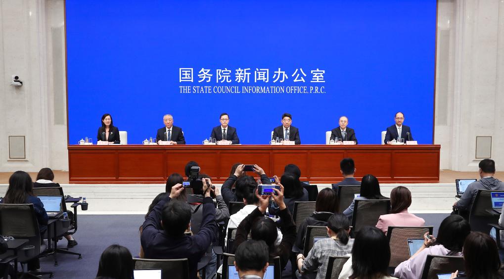 4月28日拍摄的中国科学院“磐石100”模型体系发布会现场。