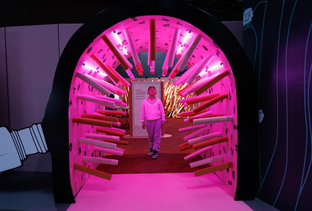 4月28日,参观者在AI集市现场扫码,参与沉浸式体验活动。