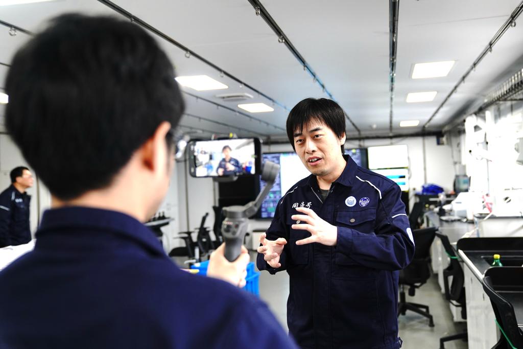 4月28日,“同济”号完成南海春季航次任务返航途中,在南海北部与同济大学附属新江湾城实验学校的学生进行视频连线,开展生动的科普直播课。