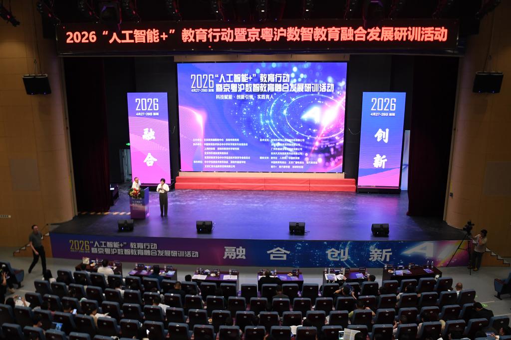 4月27至29日,由北京教育融媒体中心和深圳市教育局主办的2026“人工智能+”教育行动暨京粤沪数智教育融合发展研训活动在广东省深圳市举行。