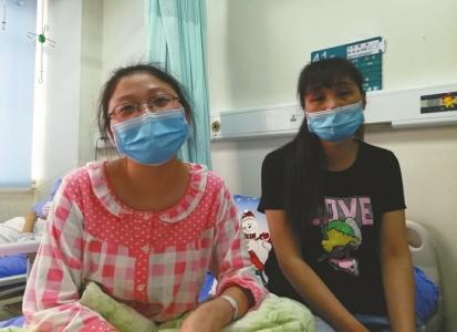 為防止肺部感染,術后的戴蕊和媽媽都戴著口罩。圖片來源:華西都市報