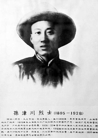 1925年8月經彭干臣等介紹,孫津川加入中國共產黨,并當選為滬寧鐵路工人協進會委員。不久,中共吳淞機廠特別支部成立,孫津川被選為特支書記。
