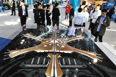 昨日,“雙創(chuàng)周”北京會場,現(xiàn)場展示大興國際機(jī)場模型。新京報記者 浦峰 攝