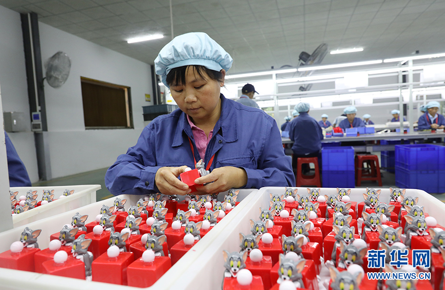 英德市連江口鎮(zhèn)連樟村扶貧工廠的工人在檢查玩具產(chǎn)品的質(zhì)量。2017年村里通過產(chǎn)業(yè)扶貧引入企業(yè)落戶到村,讓村民實現(xiàn)了家門口就業(yè)(10月24日攝)。新華社記者王瑞平攝