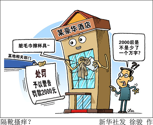 2018年11月,國內十幾家高端酒店連續(xù)曝出衛(wèi)生亂象。近日上海相關部門對涉事酒店分別處以警告、罰款2000元的處罰,引發(fā)網(wǎng)友熱議:被罰金額甚至抵不上有的酒店單間一晚房價。業(yè)界呼吁,“亮劍”酒店亂象還需“劍更鋒利”。