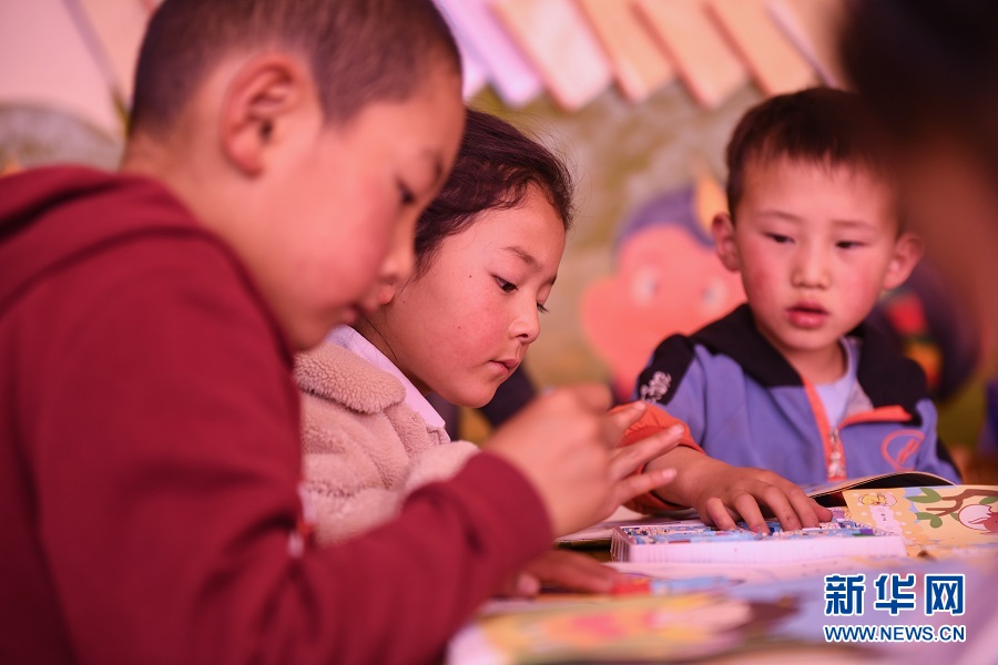 9月17日,在青海省果洛藏族自治州瑪沁縣拉加鎮中心幼兒園,孩子們正在專心上美術課。(新華網潘彬彬 攝)
