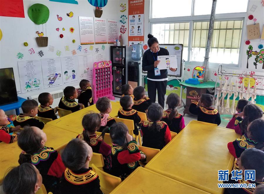 昭覺縣火普村幼教點(diǎn)老師在給孩子們上課。攝于2019年3月。新華社發(fā)