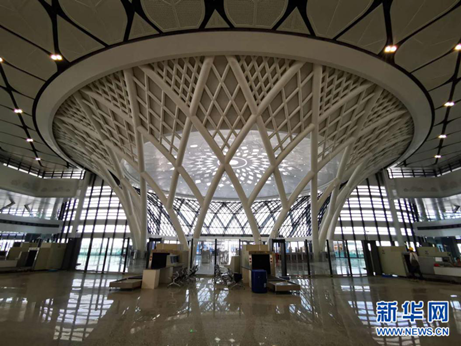 江門車站站房中心區(qū)域以“樹”狀造型(新華網(wǎng) 唐斕 攝)