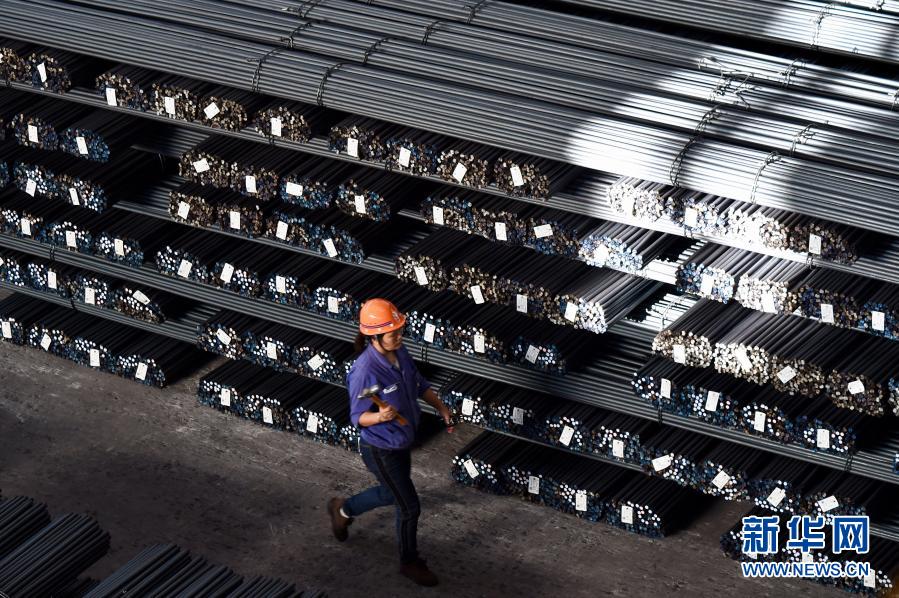 11月17日,福建省三明市三鋼集團(tuán)的工人走過(guò)成品堆放區(qū)。新華社記者 姜克紅 攝