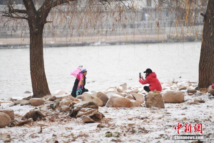 資料圖:12月2日,甘肅蘭州迎來(lái)降雪,市民在雪中拍照留影。中新社記者 楊艷敏 攝