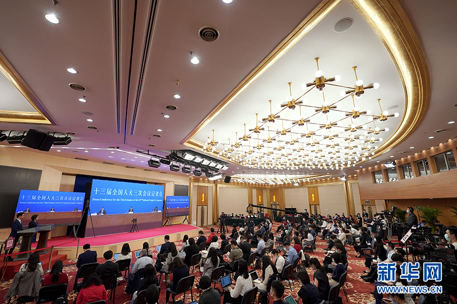 5月28日,國務院總理李克強在北京人民大會堂出席記者會并回答中外記者提問。這是記者在梅地亞中心多功能廳采訪。 新華社記者 劉金海 攝
