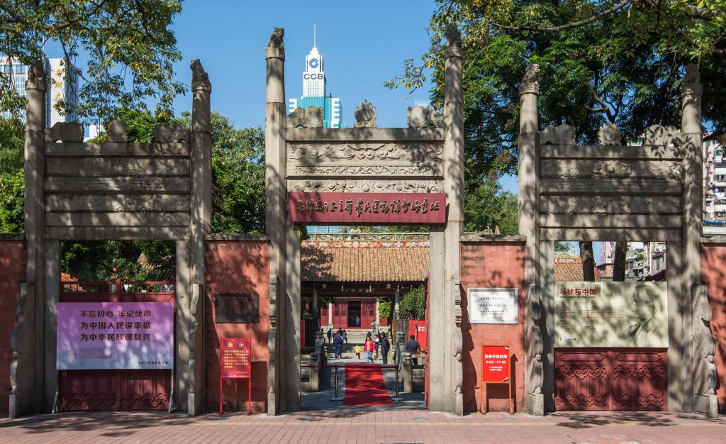 高樓林立間,坐落著一片典雅莊重的古建筑群,紅墻黃瓦、殿檐斗拱、泮池拱橋……這便是位于廣州越秀老城區的毛澤東同志主辦農民運動講習所舊址紀念館。