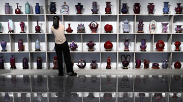 这是新疆库车市龟兹魏晋古墓遗址博物馆展出的陶器(7月15日摄)。