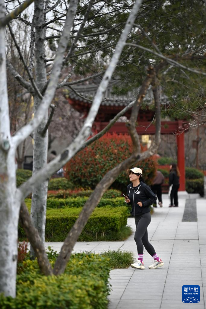 3月20日,市民在西安城墙环城公园文昌门至和平门段晨跑。