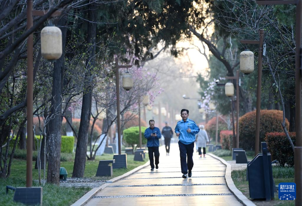 3月19日,市民在西安城墙环城公园玉祥门至安定门段晨跑。