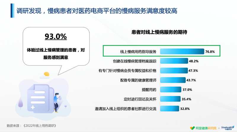 当然,对于下沉市场的慢病患者来说,除了买好药、买到药、收到药,实现持续性规律用药治疗也很重要。《白皮书》显示,2021年医药电商慢病用药复购用户数增长187%,其中下沉市场医药电商慢病用药支付金额同比增长149%,超九成体验过线上慢病管理的患者感到满意,可见用药可及性和依从性都得到很大提升。