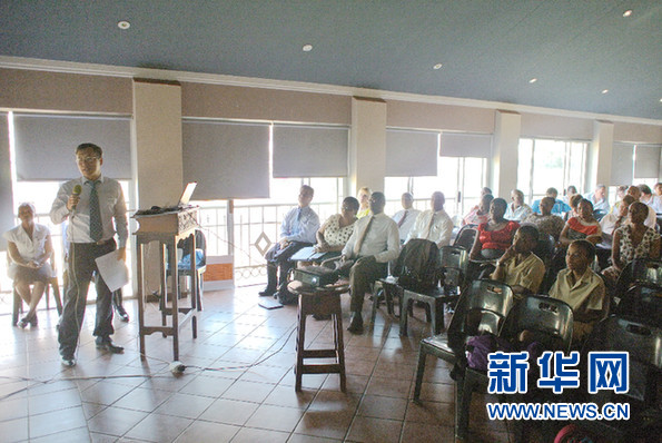 ????中國(guó)文化和國(guó)際教育交流中心負(fù)責(zé)人、南非漢語(yǔ)推廣委員會(huì)委員陸志雷博士介紹漢語(yǔ)教學(xué)情況。新華社記者郭興華 攝