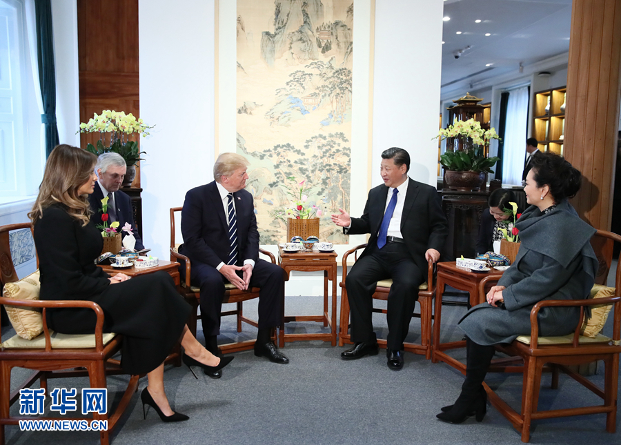 4個多小時的互動交流,氣氛融洽。臨別時,特朗普總統夫婦再次感謝習近平主席夫婦的熱情接待和周到安排,期待訪華取得積極成果。
